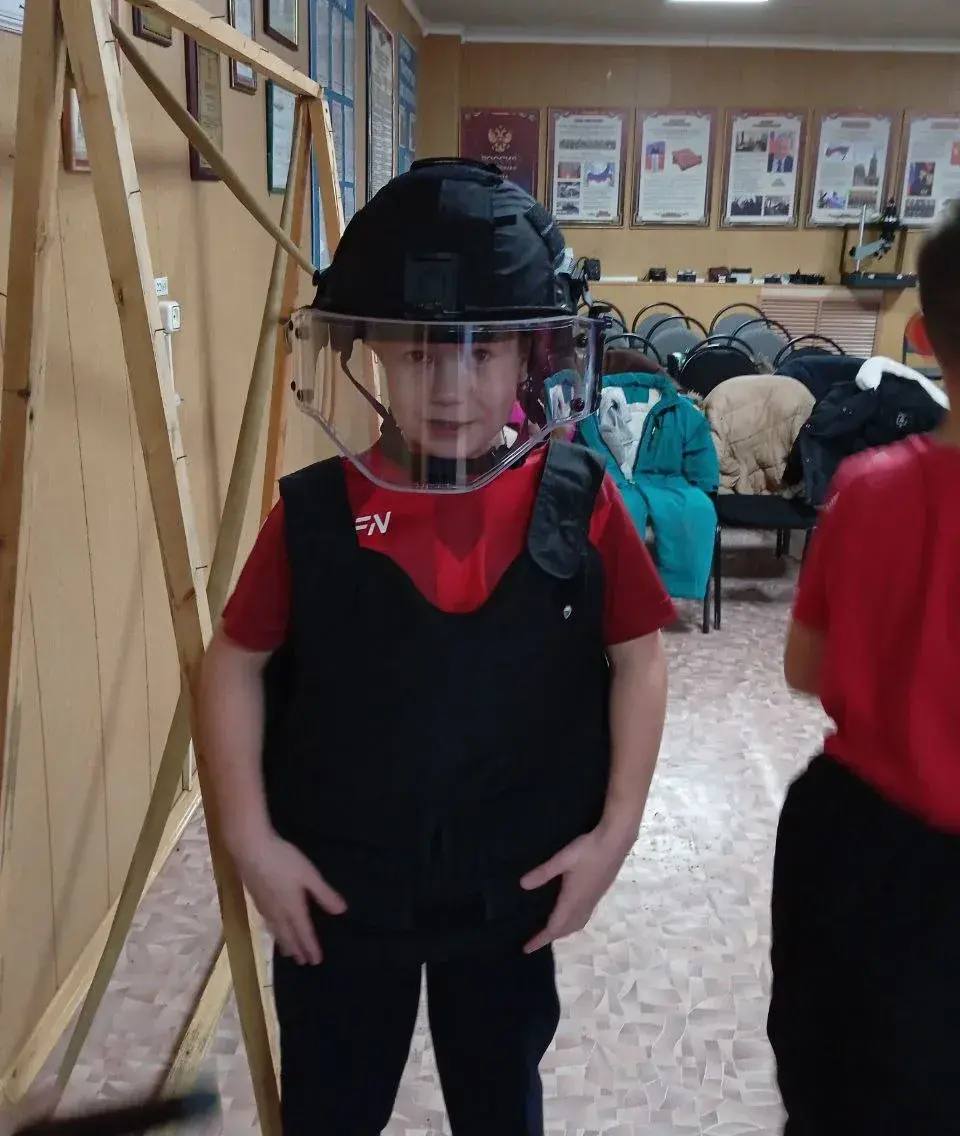 Ребята примерили снаряжение полицейских, пообщались по радиосвязи и попробовали составить фоторобот злоумышленника.