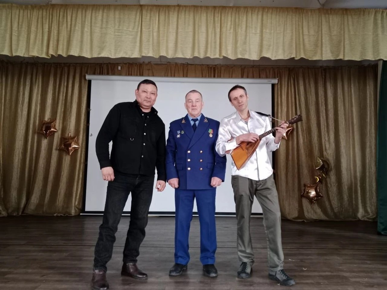 Забайкальский музыкант Анатолий Казак, инициатор проектов «Балалайка в народ» и «К истокам русской культуры» исполнил на балалайке попурри мелодий любимых в народе песен на военно-патриотическую тематику. Учащиеся дружно и горячо приветствовали его аплодисментами.