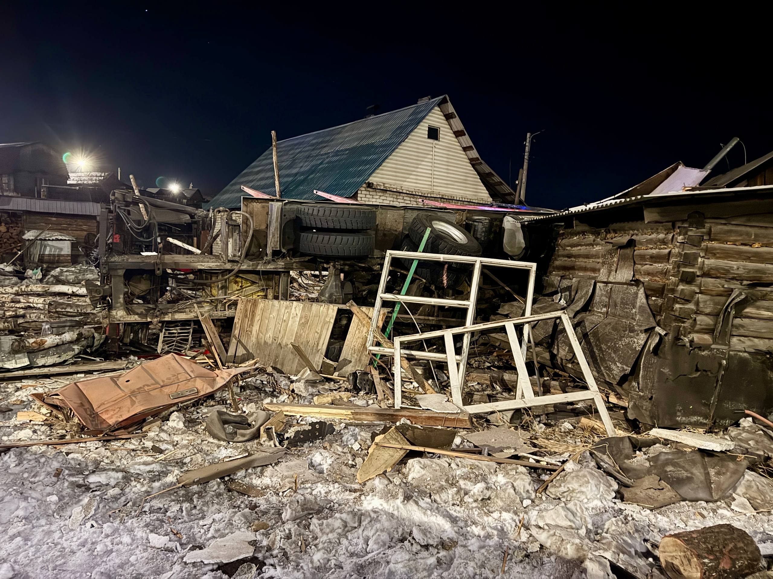 По предварительным данным, водитель большегрузного транспортного средства, двигаясь по населенному пункту, не справился с управлением и допустил съезд с дороги с дальнейшим наездом на придомовую территорию.