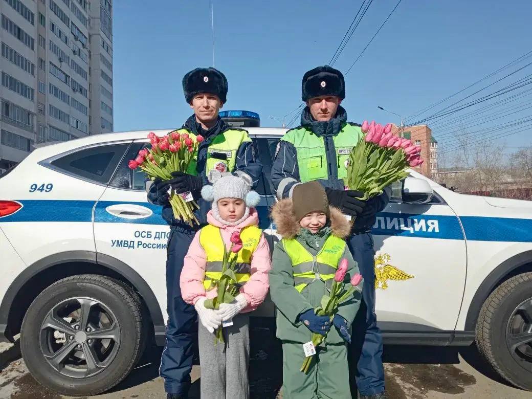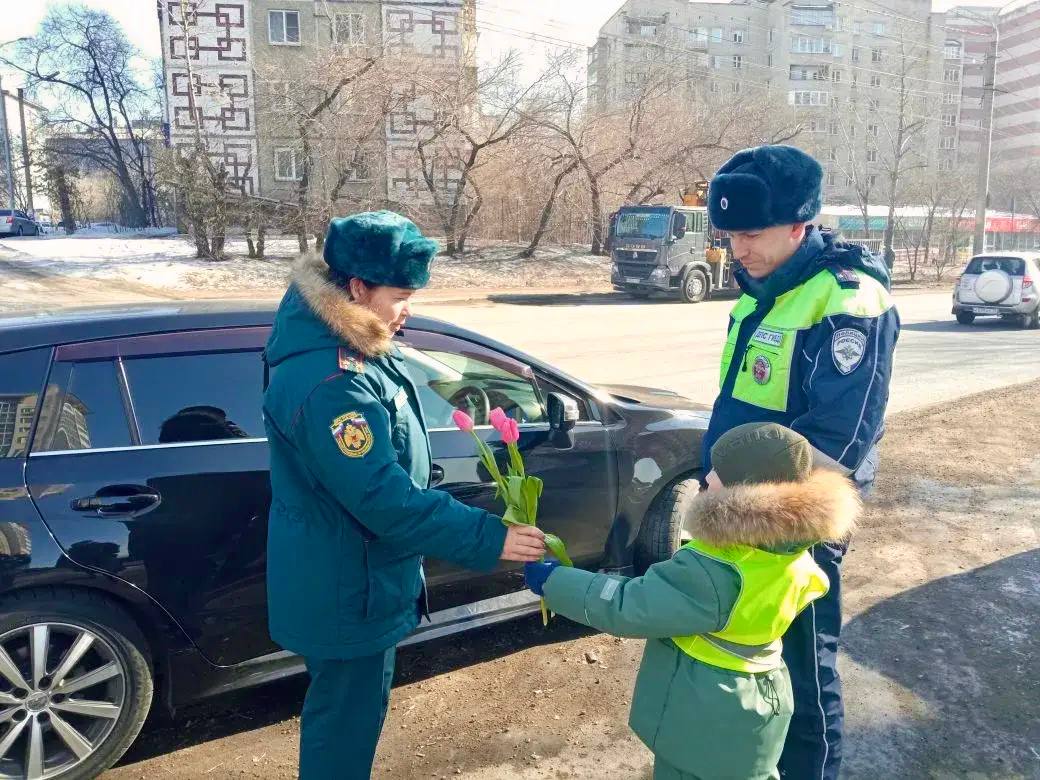 В преддверии 8 Марта в краевой столице сотрудники СБ ДПС Госавтоинспекциии УМВД России по Забайкальскому краю совместно с юными ведущими «Детского радио» поздравили женщин-водителей с наступающим праздником.