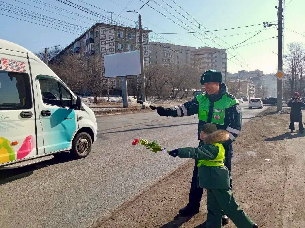 На дорогах Забайкальского края проходит акция «Цветы для автоледи»