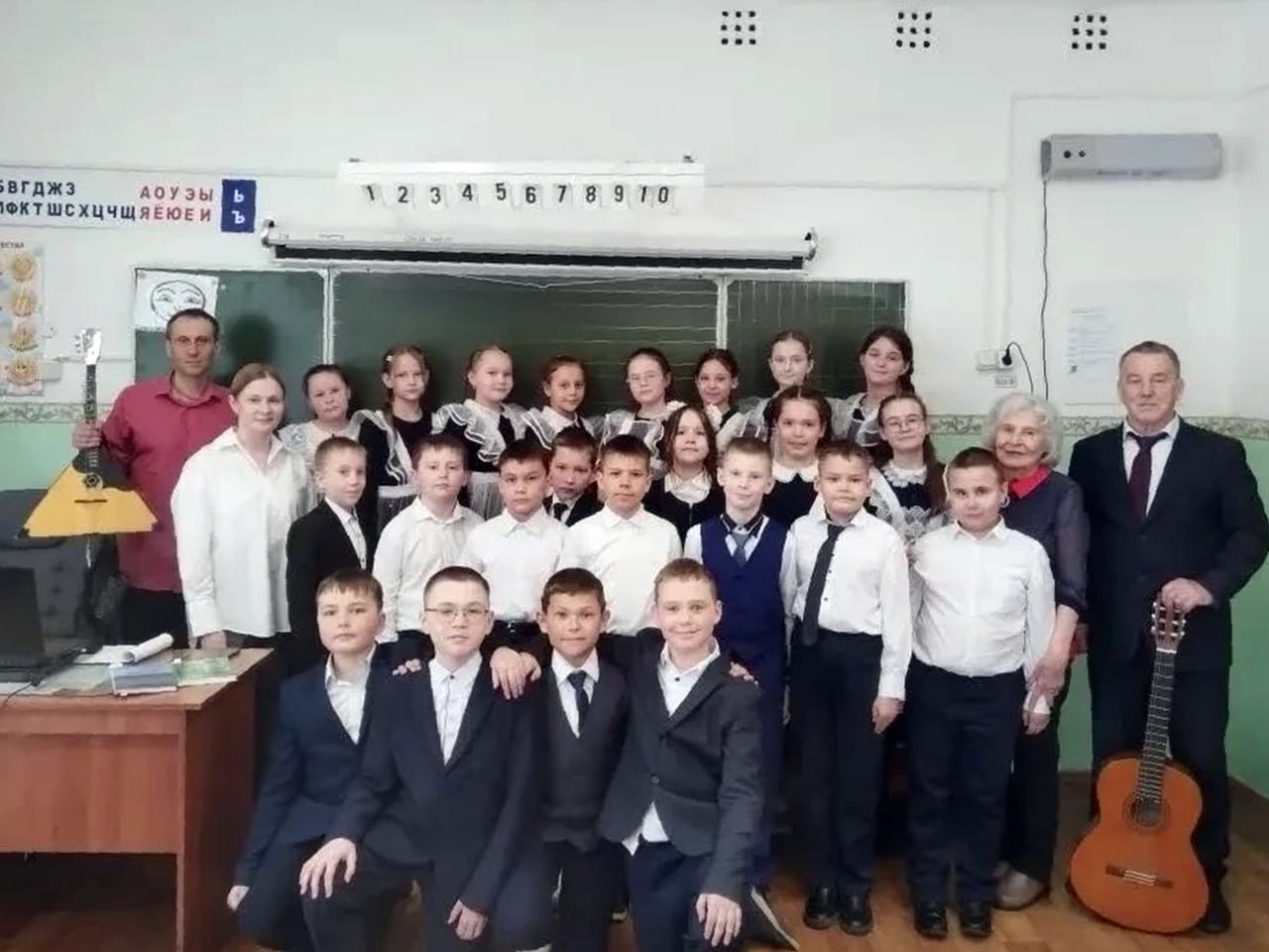 В рамках работы по патриотическому воспитанию председатель Совета общественной организации ветеранов и пенсионеров прокуратуры Забайкальского края Валерий Попов вместе с известным забайкальским музыкантом Анатолием Казаком были гостями учащихся 3–4 классов читинской средней школы № 33.