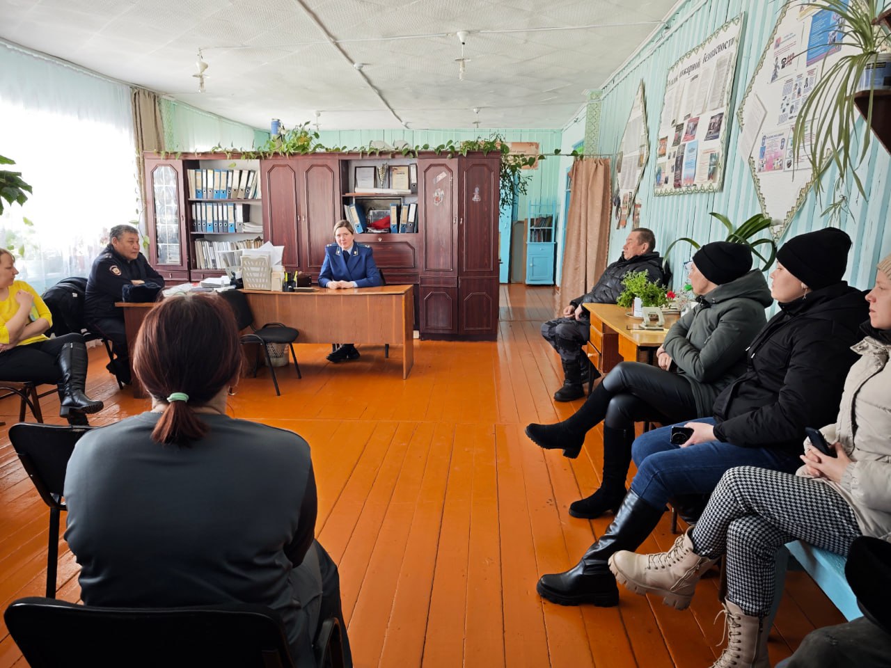 Мобильная приемная - Икшица. Прокурор Чернышевского района Наталья Михаэлис в ходе рабочего выезда в село Икшица совместно с представителями органов внутренних дел и администрации округа приняла участие в сходе граждан, где затронуты различные темы, включая противодействие IT-преступлениям и профилактику природных пожаров.