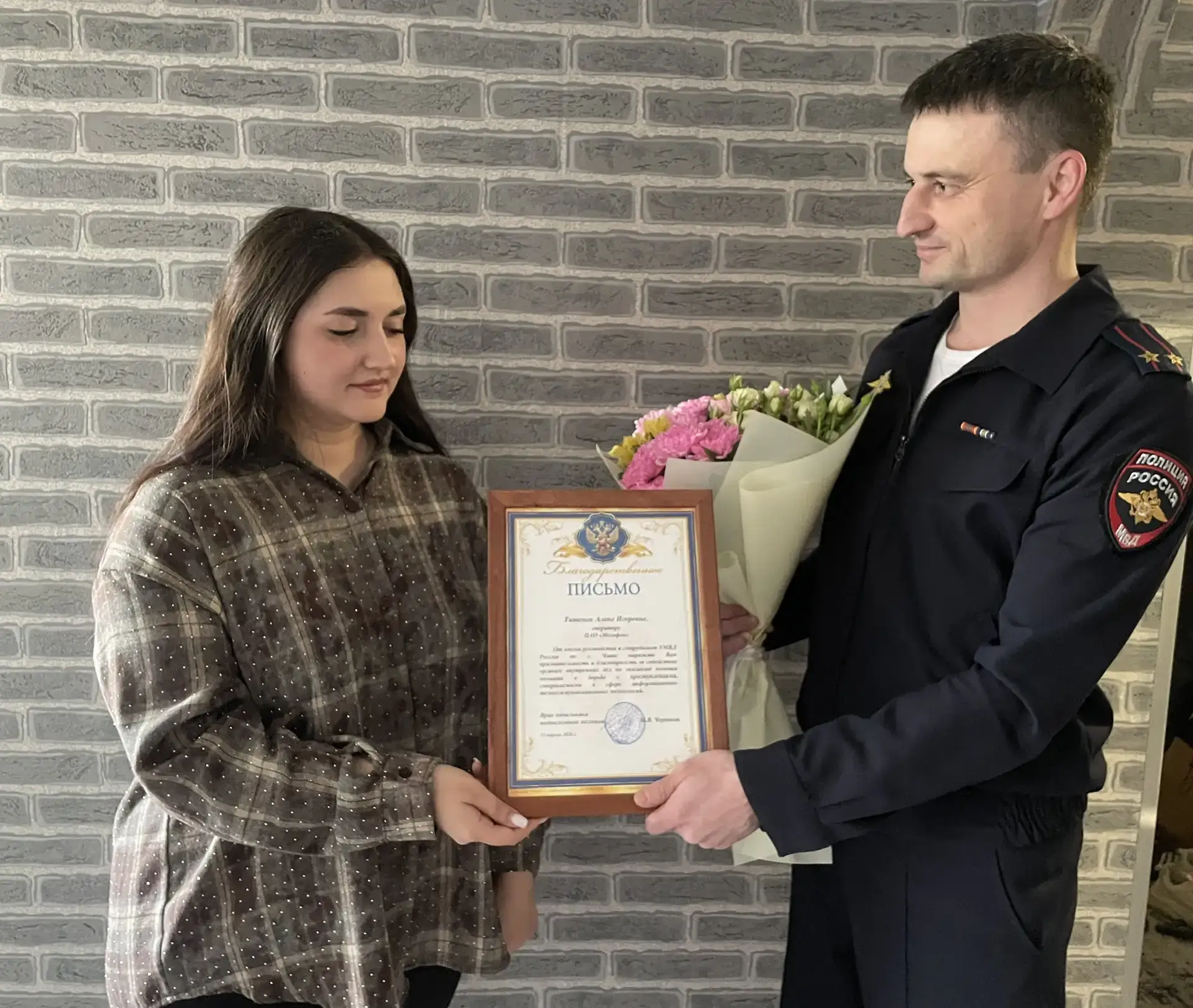 Неравнодушной девушке вручили цветы и благодарственное письмо, выразив признательность за её активную гражданскую позицию