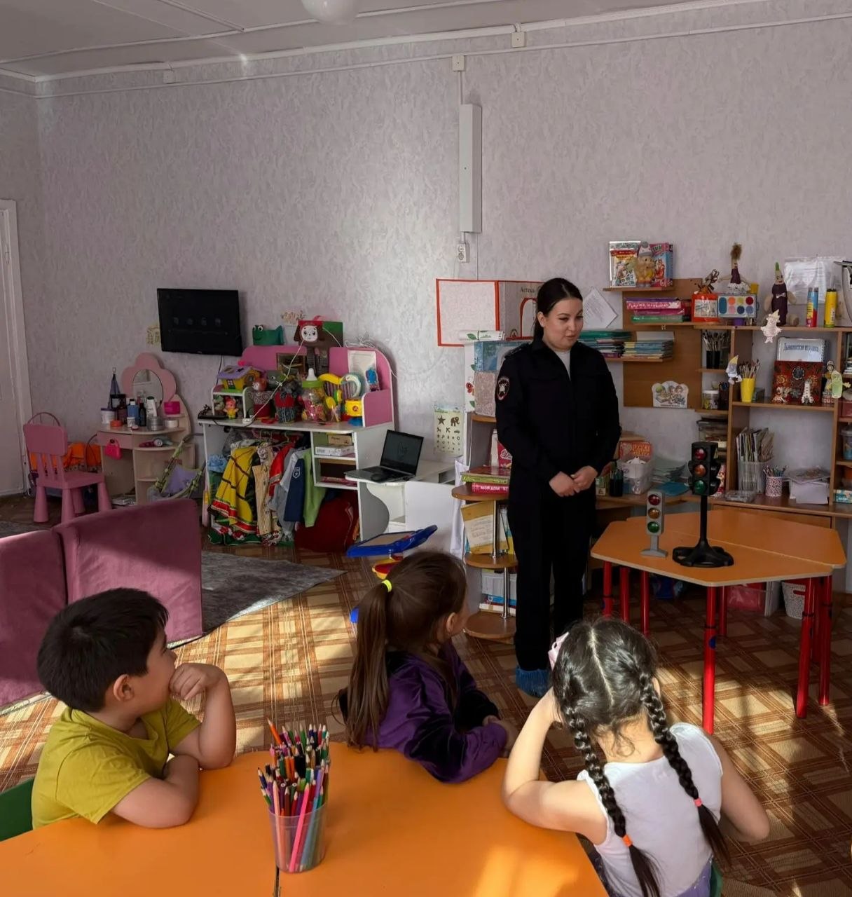 Инспектор по пропаганде безопасности дорожного движения Закарова Аюна проводит с детьми познавательные занятия, направленные на формирование основ безопасного поведения на дороге.