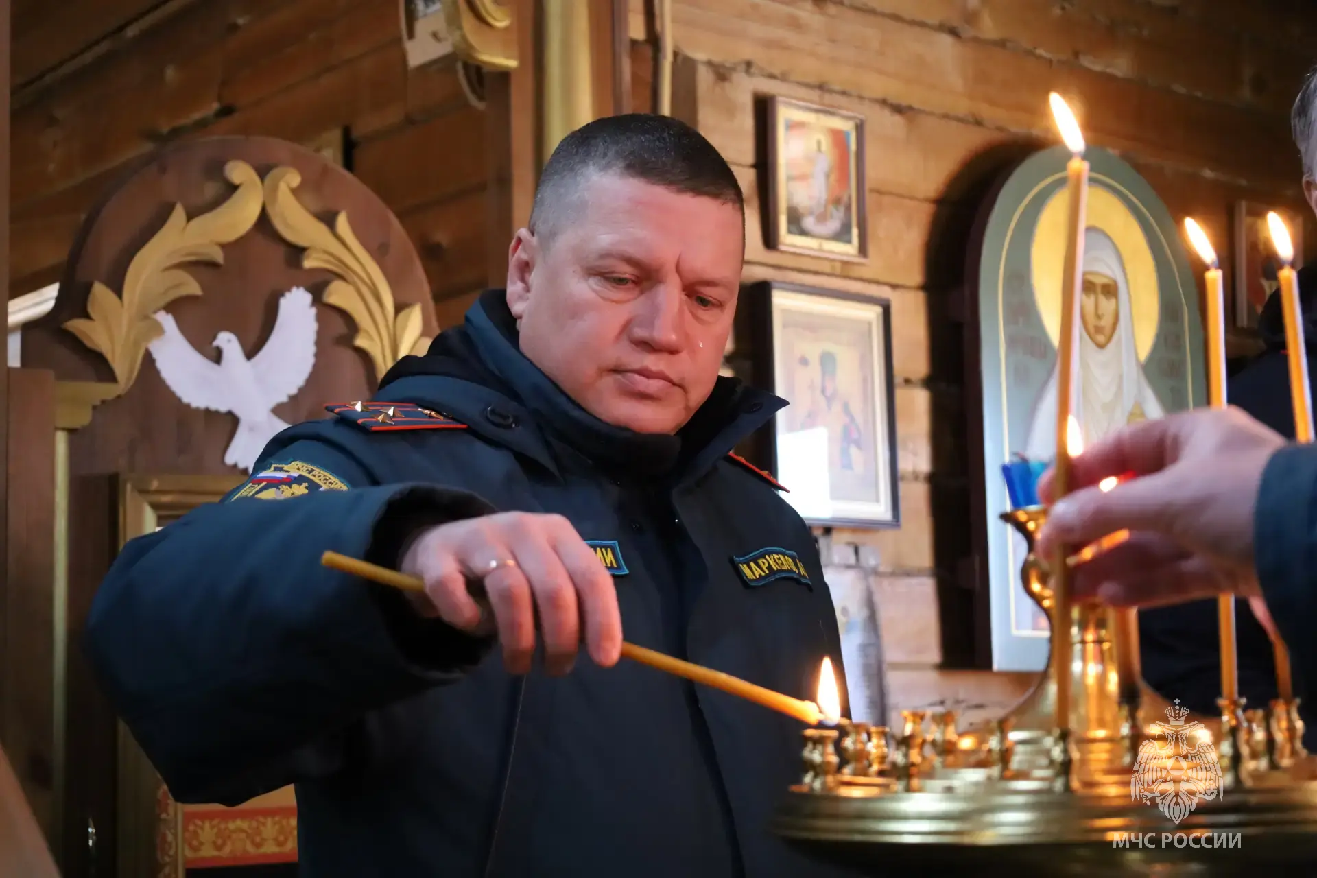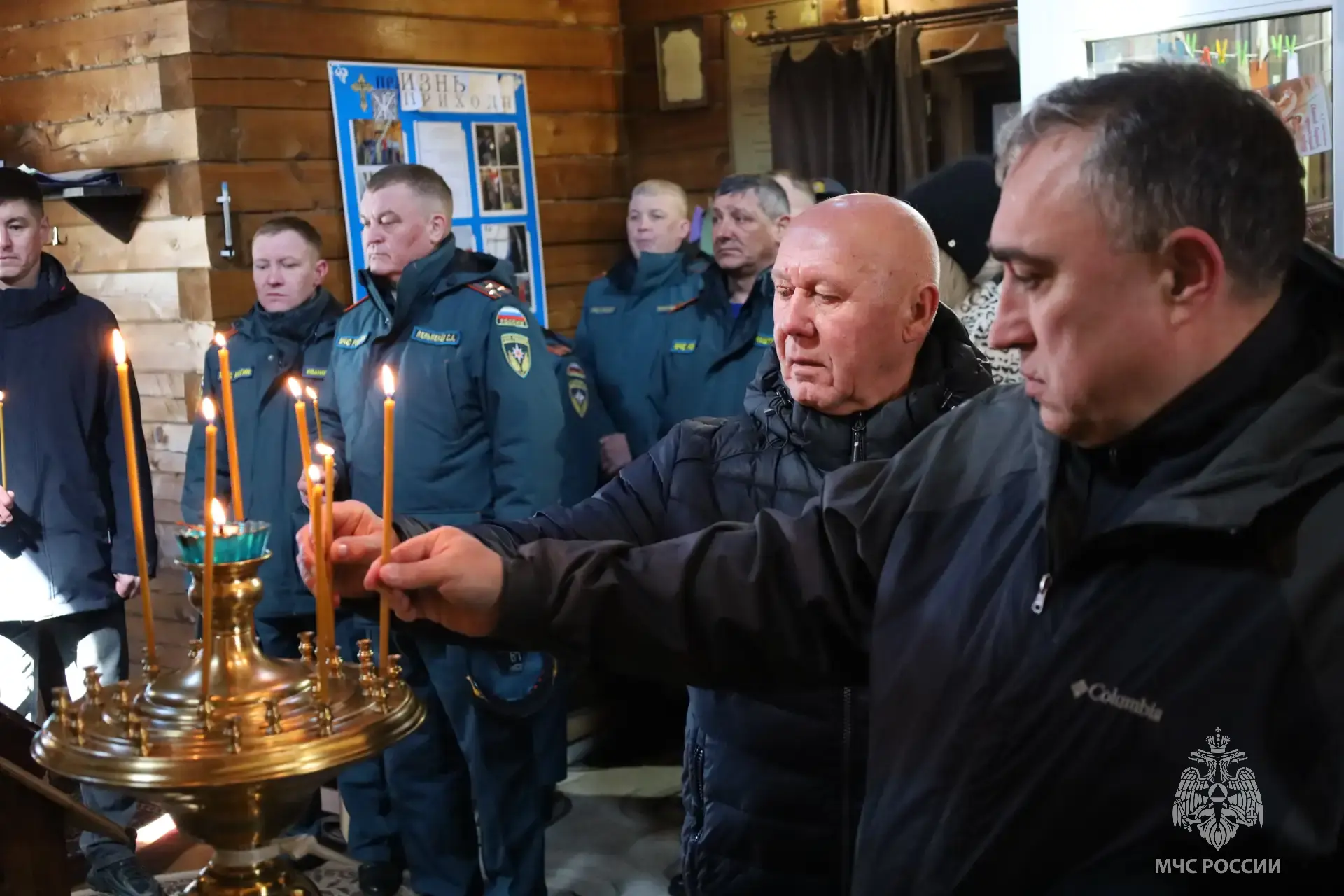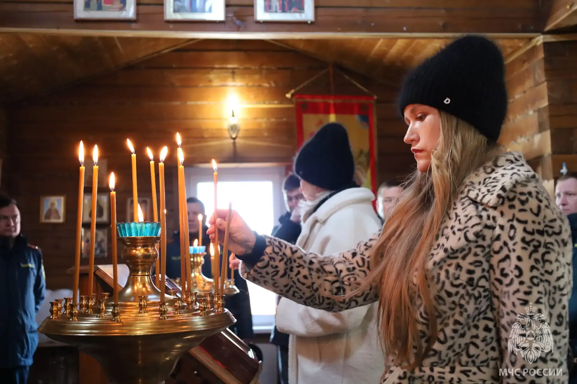 Затем память погибших почтили в храме в честь иконы Божией Матери «Неопалимая Купина», который также расположен на территории пожарно-спасательной части № 6. Сотрудники и ветераны вознесли молитвы и поставили свечи об упокоении душ.