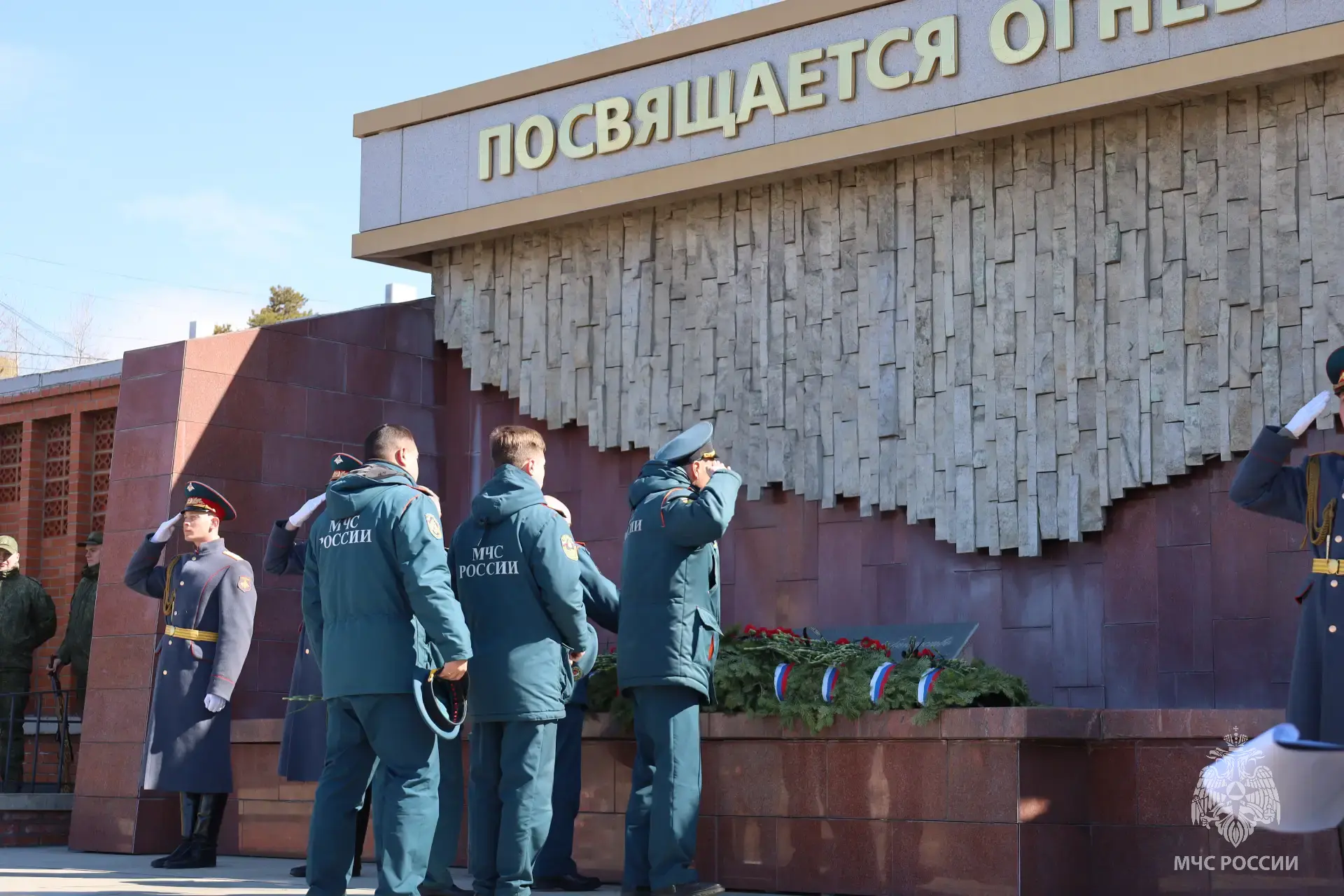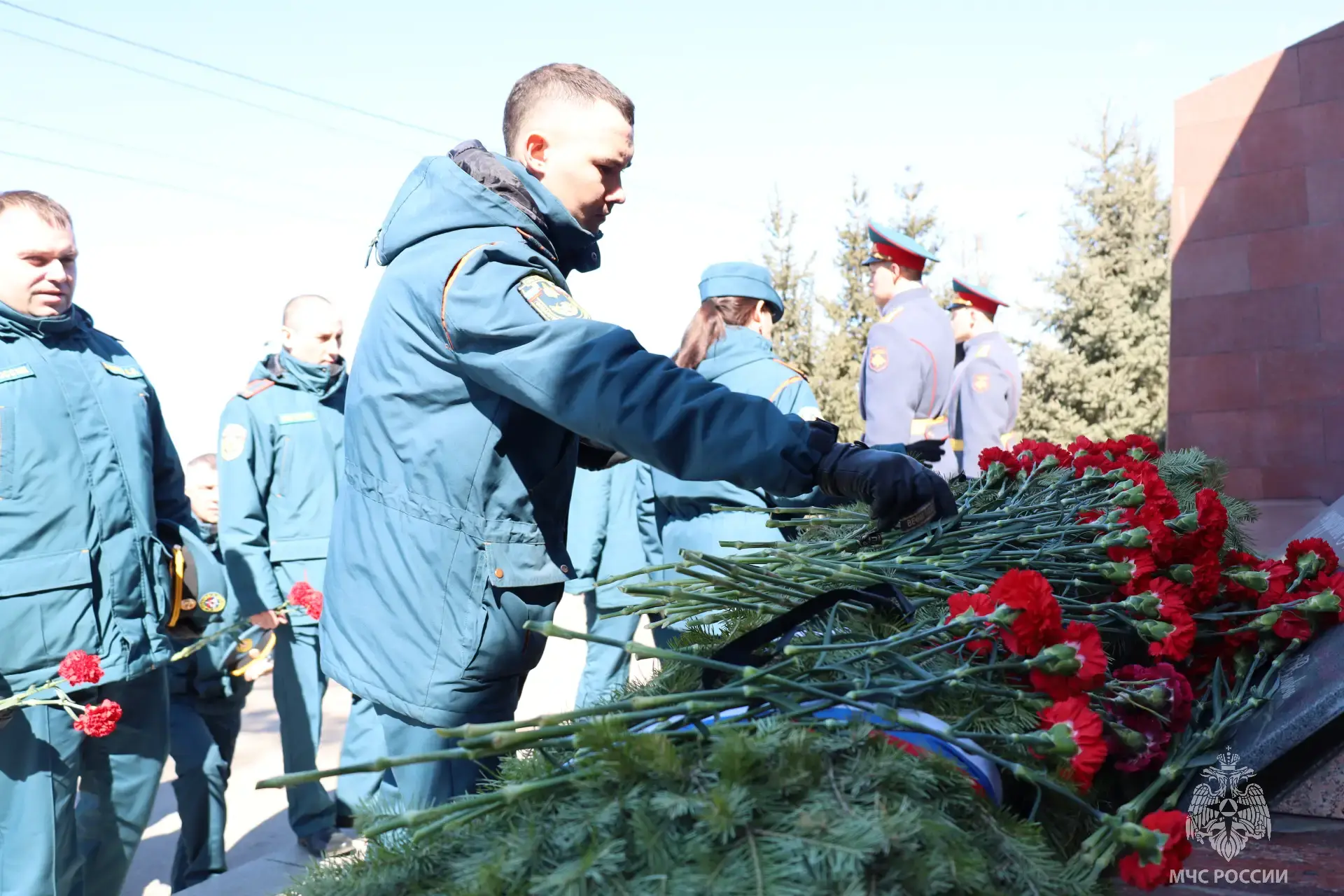 По завершении официальной части сотрудники МЧС, ветераны и гости возложили цветы к подножию мемориала. Бойцы почетного караула произвели троекратный ружейный залп – дань воинской чести павшим героям.
