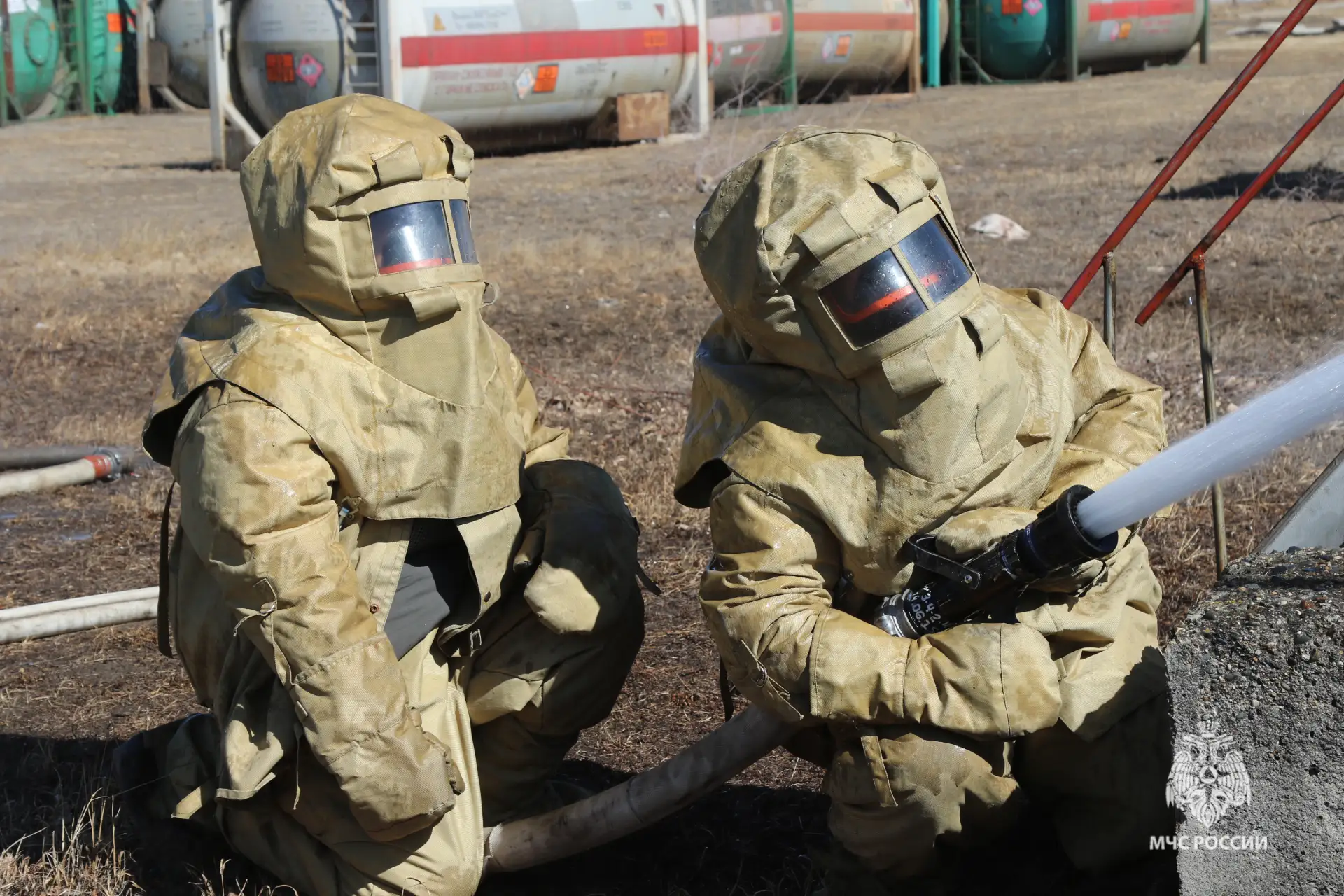 Сотрудники МЧС Забайкалья отработали защиту от огня газонаполнительной станции