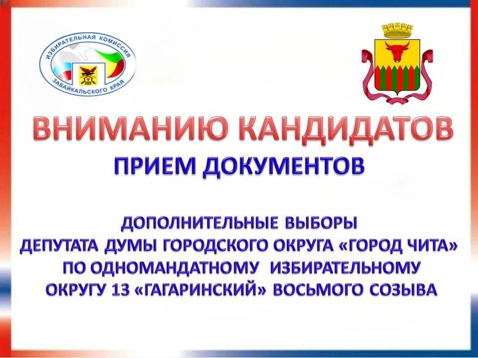 Продолжается важнейший этап избирательной кампании по дополнительным выборам депутата Думы городского округа «Город Чита» по одномандатному округу №13 «Гагаринский» - прием документов для выдвижения и регистрации кандидатов