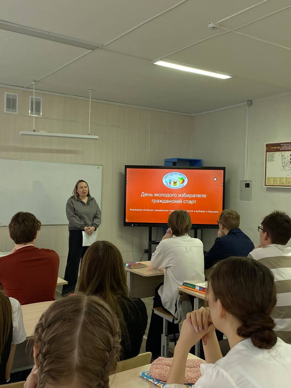 Сегодня в школе №7 г. Краснокаменска в рамках Дня молодого избирателя для старшеклассников состоялась просветительская встреча «Гражданский старт», организованная председателем территориальной избирательной комиссии Натальей Приступ.