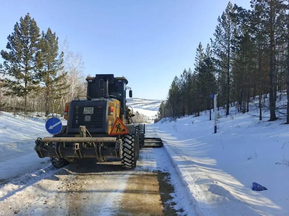 Региональные автодороги очищают от снега в Забайкалье.