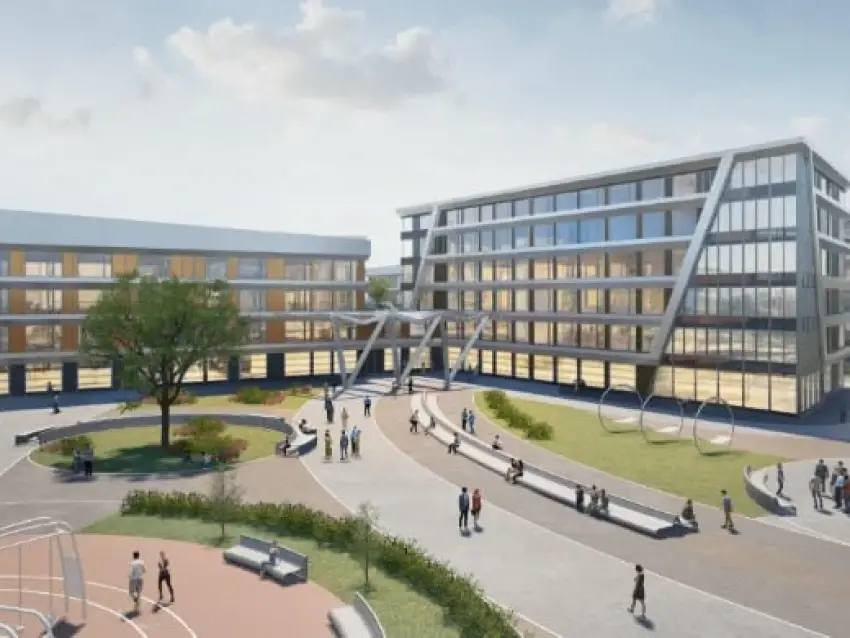 Студентов ждут прогулочные зоны, современные точки питания и спортивный комплекс. Последний оснащен бассейном и скалодромом, открытым стадионом с трибунами, футбольным полем и спортивными площадками.