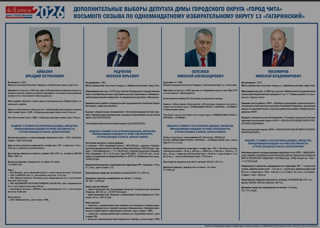 В краевой столице продолжается избирательная кампания по дополнительным выборам депутата Думы городского округа «Город Чита» по одномандатному избирательному округу №13 Гагаринскому.