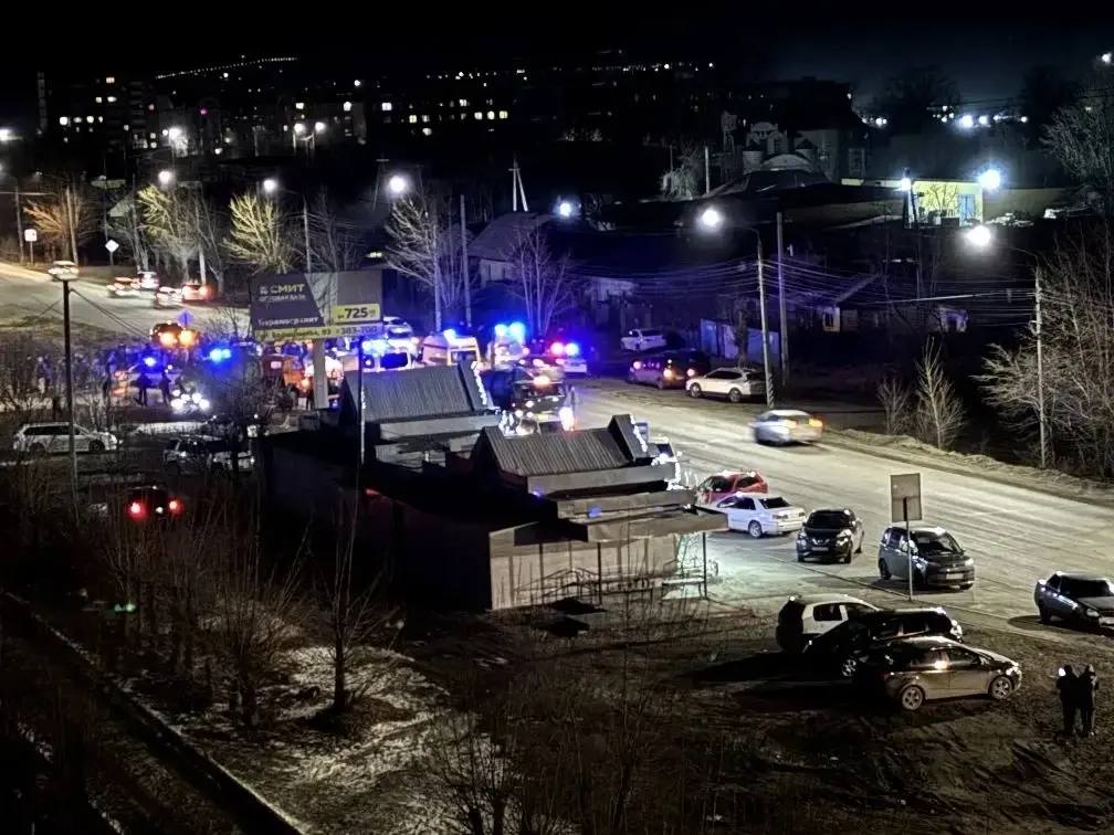 На место работает несколько машин скорой помощи, полиция и спасатели.