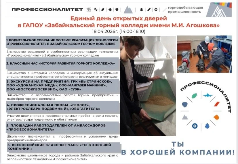 День открытых дверей пройдёт завтра в Забайкальском горном колледже