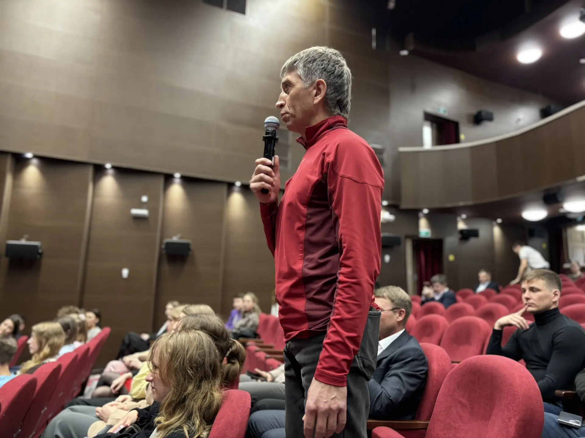 В формате живого диалога читинцы и гости города задавали вопросы на тему развития различных видов спорта в Забайкальском крае, особенно про биатлон, мотоспорт и конькобежный спорт. Затронули и тему региональной спортивной журналистики. Дмитрий Губерниев ответил, что в регионах не должны забывать развивать национальные виды спорта и рассказывать об этом в прессе.