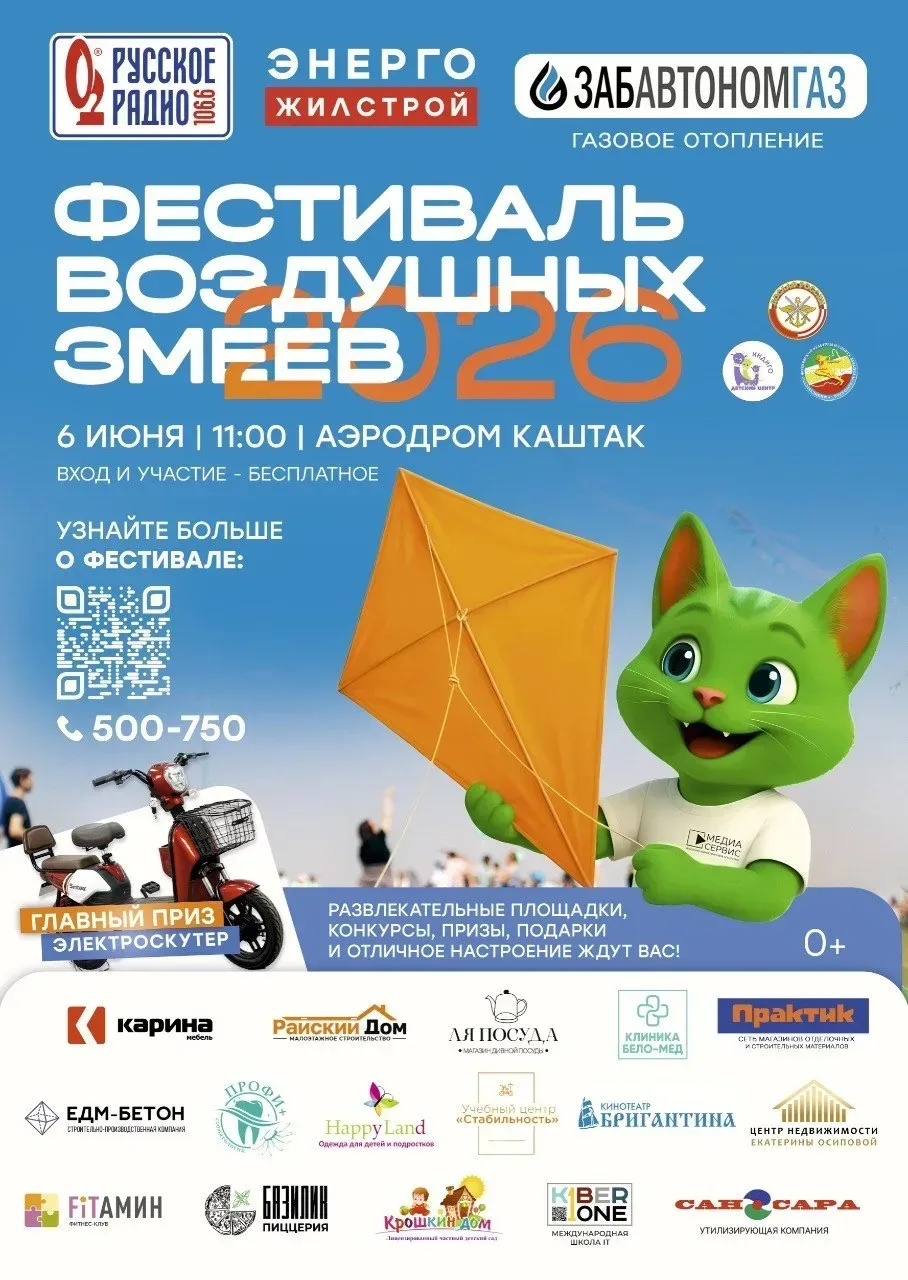 Главный семейный праздник Забайкальского края под открытым небом «Фестиваль воздушных змеев – 2026» пройдет 6 июня
