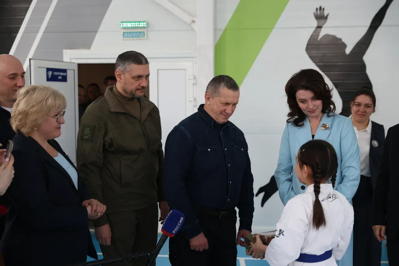 Юрий Трутнев осмотрел модульный спортивный зал школы №33, построенный в 2023 году на средства Единой президентской дальневосточной субсидии по программе «50 модульных спортивных залов на Дальнем Востоке».