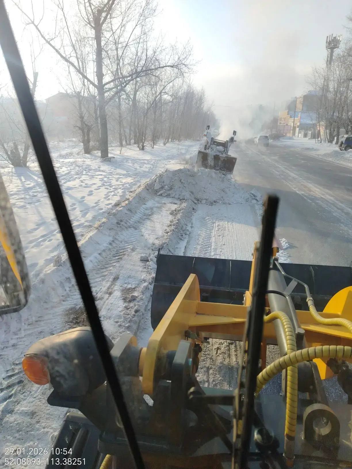 Компания «Авелина», ответственная за текущее обслуживание улично-дорожной сети в Черновском районе краевого центра, показала, как выглядит мехочистка с погрузкой и вывозом снега на ул.Космонавтов из кабины грейдера.