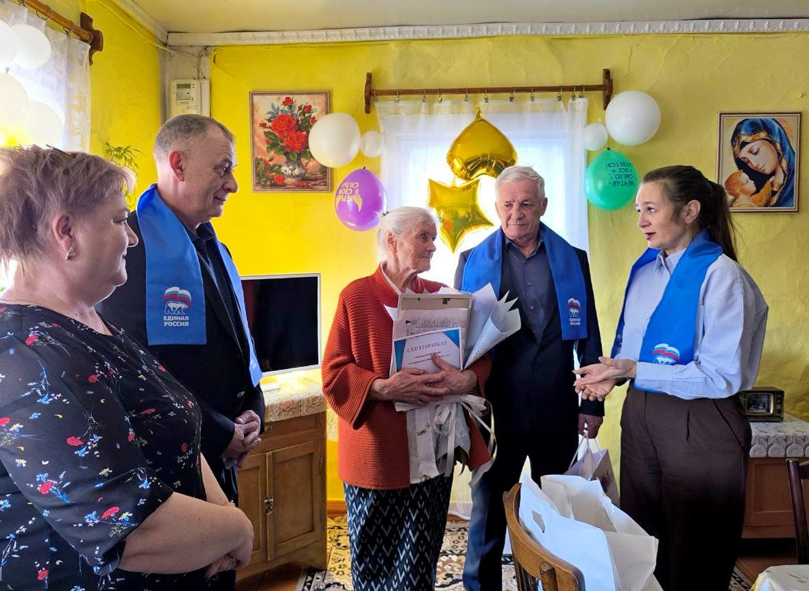 В день юбилея депутат краевого парламента навестил жительницу Петровск-Забайкальского округа Веру Александровну Федаеву вместе с коллегами по партии "Единая Россия".