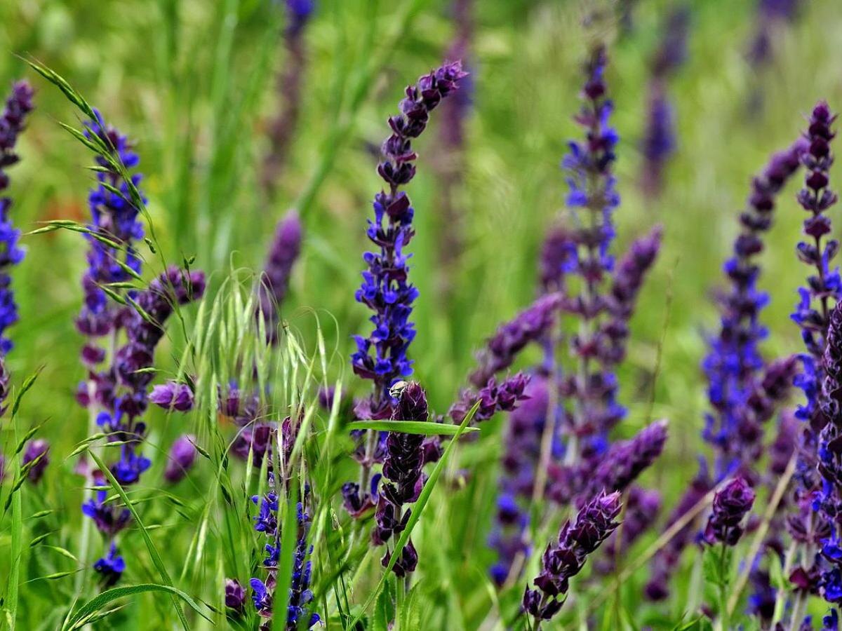 Декоративный шалфей выделяется ярко-фиолетовыми и синими оттенками, привлекающими не только глаз, но и пчел с бабочками. Это идеальное растение для цветочных грядок и бордюров, устойчивая к засухе и простая в уходе.