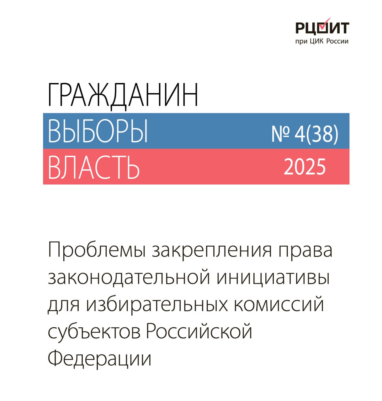 В четвертый выпуск журнала «Гражданин. Выборы. Власть» за 2025 г. вошла статья о закреплении права законодательной инициативы избирательных комиссий субъектов Российской Федерации.