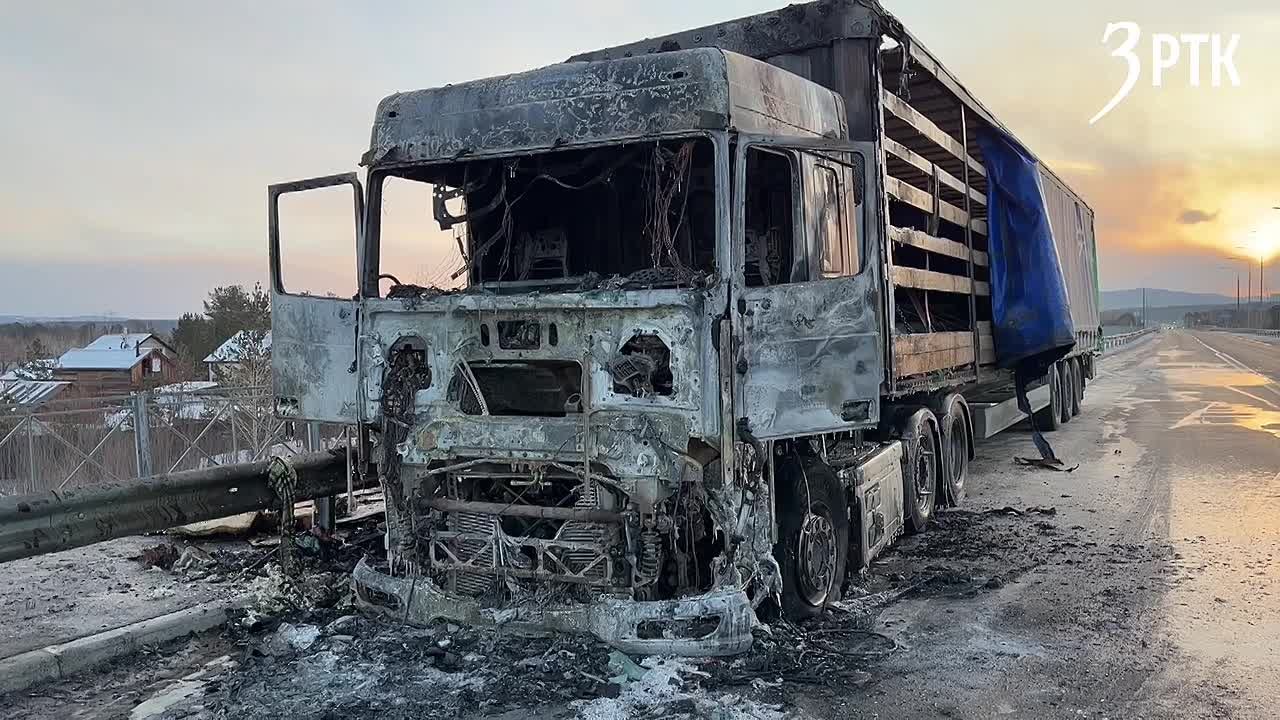 Напомним, вчера вечером напротив кафе «Баян Зочин» в Угдане загорелась фура. По словам очевидцев, произошел взрыв в кабине большегруза и его дальнейшее возгорание. По данным пресс-службы «Забайкалпожспаса» горела кабина и обшивка прицепа. Пострадавших и погибших нет.