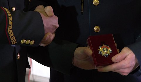 Почётная награда Монгольской Народной Республики - орден Сухэ-Батора прибыла сегодня в Забайкалье. Памятный символ о военном сотрудничестве вручил командованию 266 авиационного полка, дислоцированного в Домне, заместитель министра обороны Монголии - генерал-майор Дашцэдэнгийн Баасандамба. Торжественная церемония прошла сегодня в стенах военно-исторического музея Дома офицеров Забайкальского края. Орден Сухэ-Батора вручается за особые заслуги, мужество и отвагу.