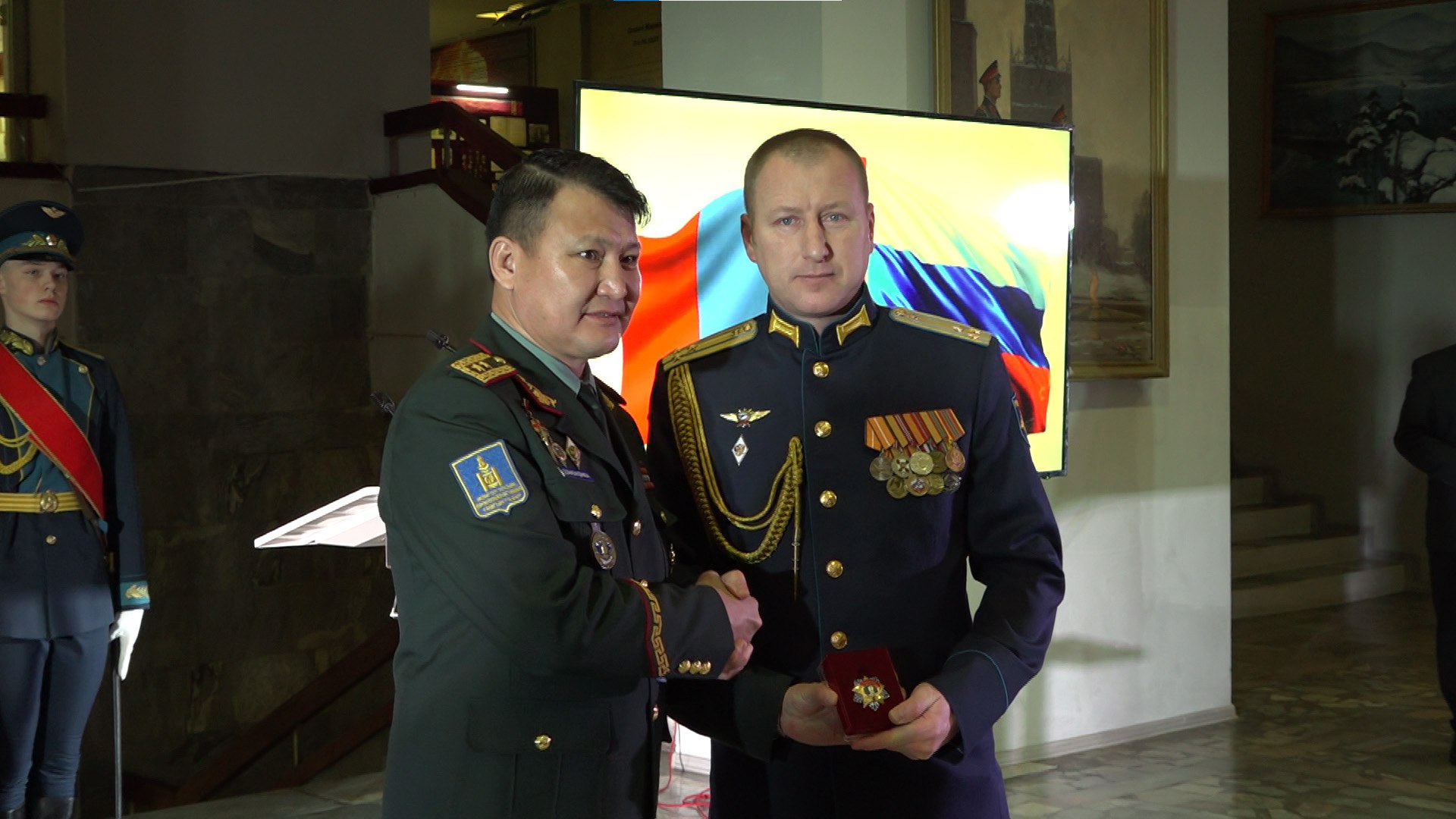 Дружба и военное сотрудничество с более чем вековой историей. В Забайкальский край прибыла почётная награда Монгольской Народной Республики. Орден Сухэ-Батора вручил командованию двести 66ого авиационного полка, дислоцированного в Домне, заместитель министра обороны Монголии - генерал-майор Дашцэдэнгийн Баасандамба. О важном государственном визите - материал Антона Калганова.