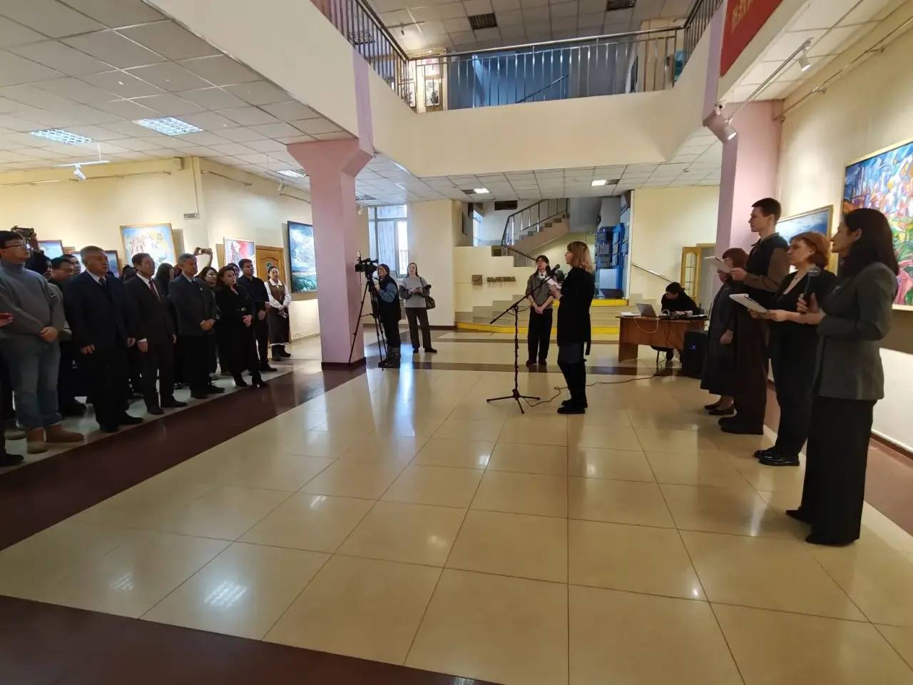В холле выставили картины русских и китайских студентов, созданные в Международном творческом центре на базе ЗабГУ, который открылся в сентябре 2024 года. Это результат программы Приоритет-2030. Дальний Восток.