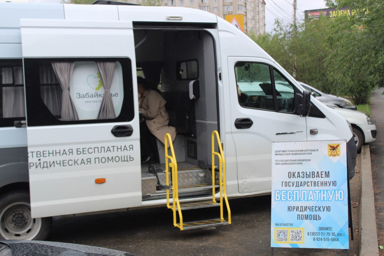 Также для более эффективной работы с гражданами, в том числе и маломобильными, бесплатная юридическая помощь осуществляется адвокатами в Многофункциональных центрах Читы и районных округах и специалистами Государственного казенного учреждения «Государственное юридическое бюро». В дополнение, в распоряжении Департамента находится специализированный транспорт по оказанию бесплатной юридической помощи, который был выделен Забайкалью президентом России Владимиром Путиным.