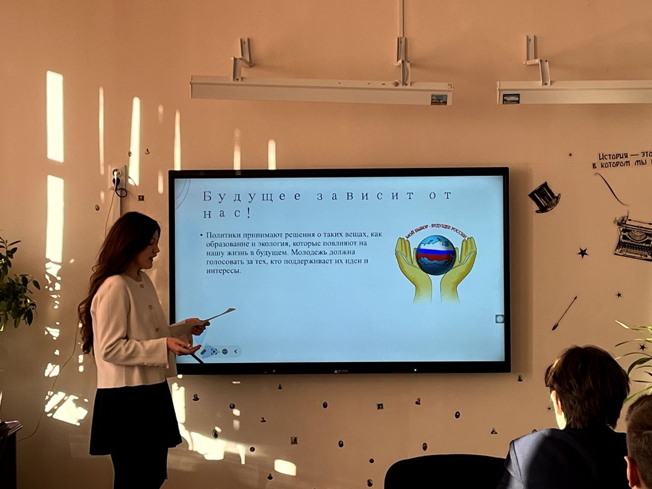 Старшеклассники сами выступили в роли просветителей, подготовив и проведя для учеников 8-х классов урок на тему Участие молодежи в выборах. Почему это важно.