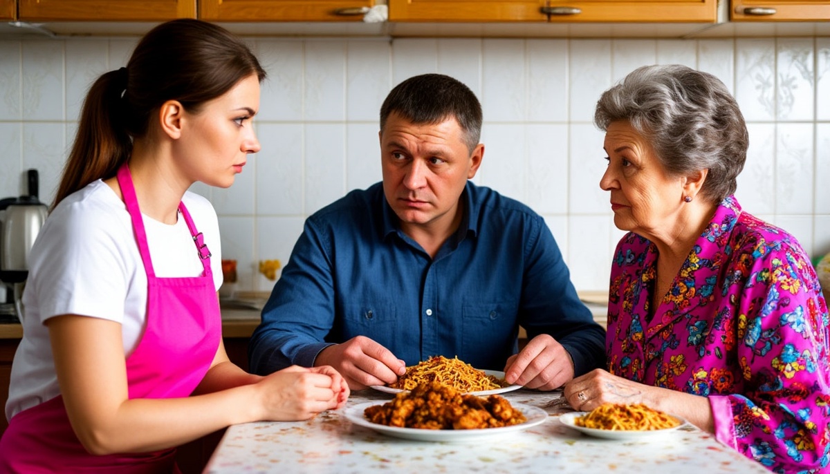 Однако после свадьбы в их уютный быт вмешалась свекровь Клавдия Степановна. Бывшая кухарка, она готовила сытную и высококалорийную пищу, рассматривая еду как проявление любви. В её представлении, жирный борщ и картошка с мясом были единственными настоящими блюдами.