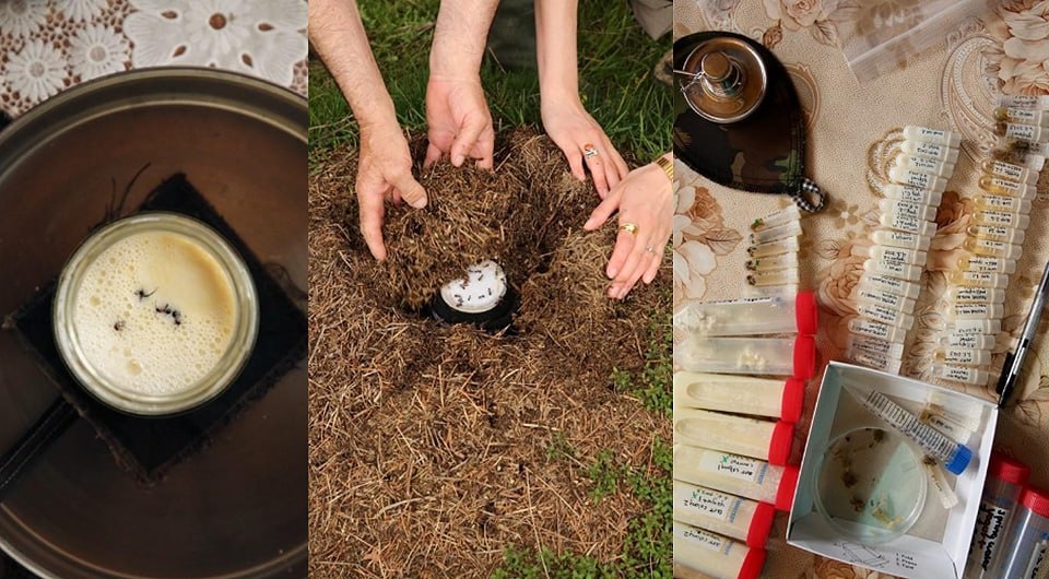 В рамках своего исследования ученые добавили четырех живых муравьев в теплое молоко, затем зарыли банку в муравейник и оставили на всю ночь. На следующий день молоко начало ферментироваться, и ученые могли оценить результаты своего эксперимента.