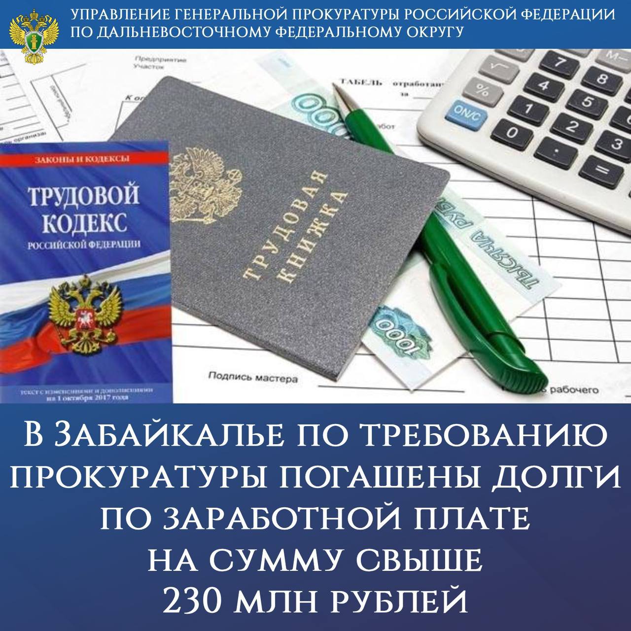 В Забайкалье по требованию прокуратуры погашены долги по заработной плате на сумму свыше 230 млн рублей