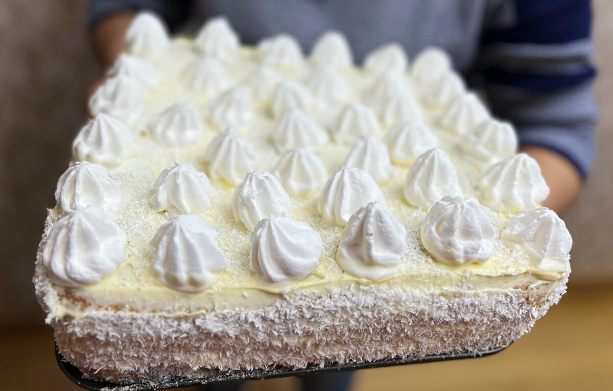 Коротко: из двух бисквитных коржей, слоя хрустящего безе и нежного заварного крема получается торт, от которого улыбаются все. Немного хлопот — и весь дом наполняется ароматом детства и праздника.