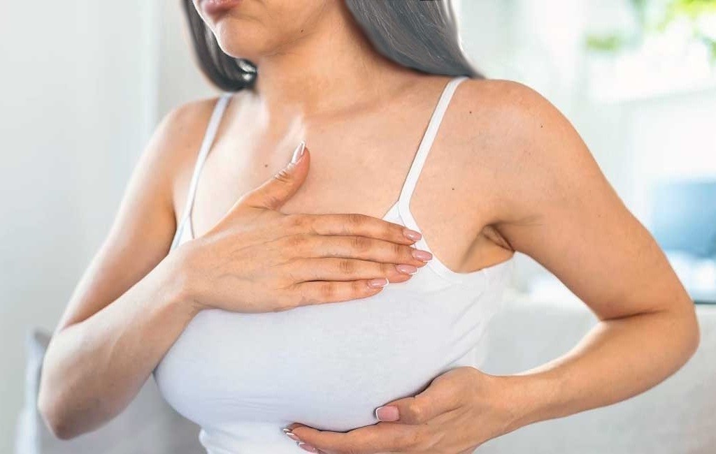 - Изменение формы или плотности груди — это может быть незначительное утолщение или изменение контура.
