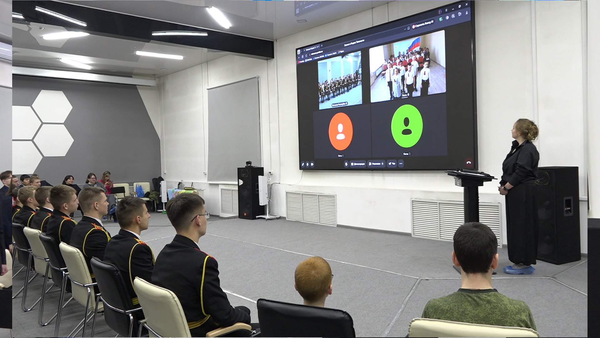 Расстояние поздравлениям не помеха. Сегодня в Чите в преддверии Дня защитника Отечества прошёл телемост. Учащиеся общеобразовательных учреждений из краевой столицы обменялись выступлениями с Новокатериновской школой Старобешевского округа Донецкой народной республики.