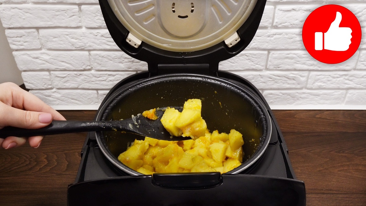 Для начала, в чашу мультиварки налейте подсолнечное масло, затем добавьте мелко нарезанный лук и натертую на крупной терке морковь. После этого положите очищенный и нарезанный картофель, добавьте специи, соль и влейте холодную воду. Выберите режим "Тушение" и готовьте в течение 50 минут. После завершения программы аккуратно перемешайте блюдо.
