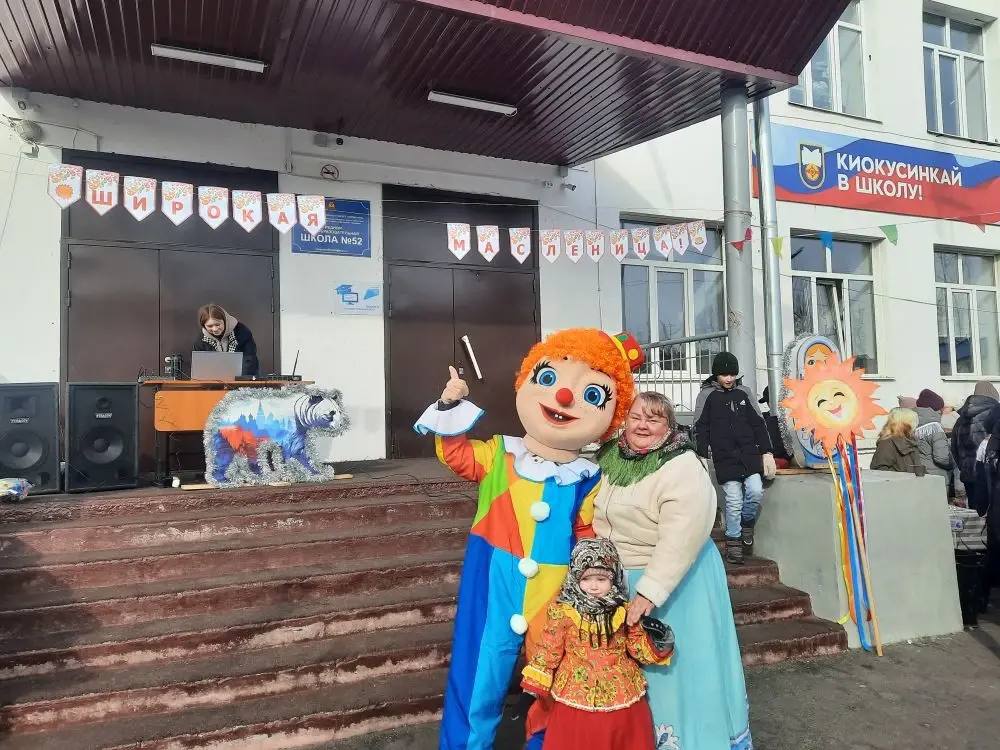 Празднование Масленицы проходит и в средних школах краевого центра. Например, накануне его отметили в школе N52, расположенной в поселке КСК. Мероприятие было дополнено школьной ярмаркой.