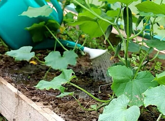 Огурцы любят влагу, но не переносят ее застой. Учитывая этот момент, можно избежать появления горчинки в плодах. Важно также, чтобы вода была чистой и не содержала вредных примесей (соли, фтора и т.д.). Если вода жесткая, рекомендуется добавлять золу в расчете 50 г на 10 л перед поливом.