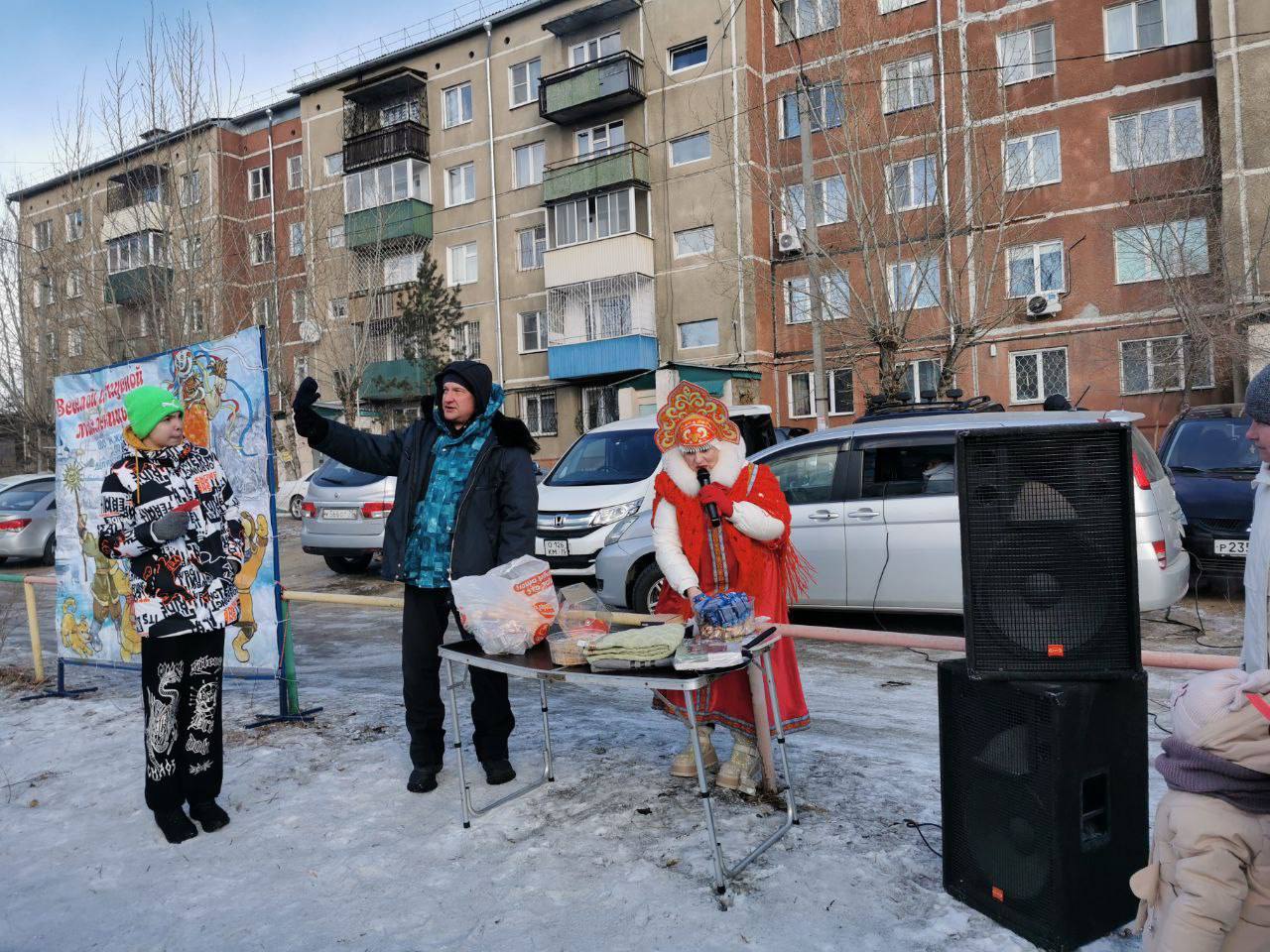 Совместными усилиями депутаты Думы Читы Валерий Сугоров, Евгений Сажин, депутат Заксобрания Ольга Серебрякова и администрация Центрального района организовали праздник Масленицы во дворах домов по улице Угданская, 10, Токмакова, 4, Подгорбунского, 5.