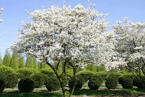 Ирга Балерина можно формировать как в виде кустарника, так и небольшого деревца. Она достигает высоты до 5 метров и ширины до 6 метров, с характерной вазообразной кроной и серым стволом. Листья меняют свои оттенки в течение сезона: весной они бронзовые, летом тёмно-зелёные, а осенью – оранжево-пурпурные. Белоснежные цветки собраны в кистевидные соцветия, что добавляет декоративности.