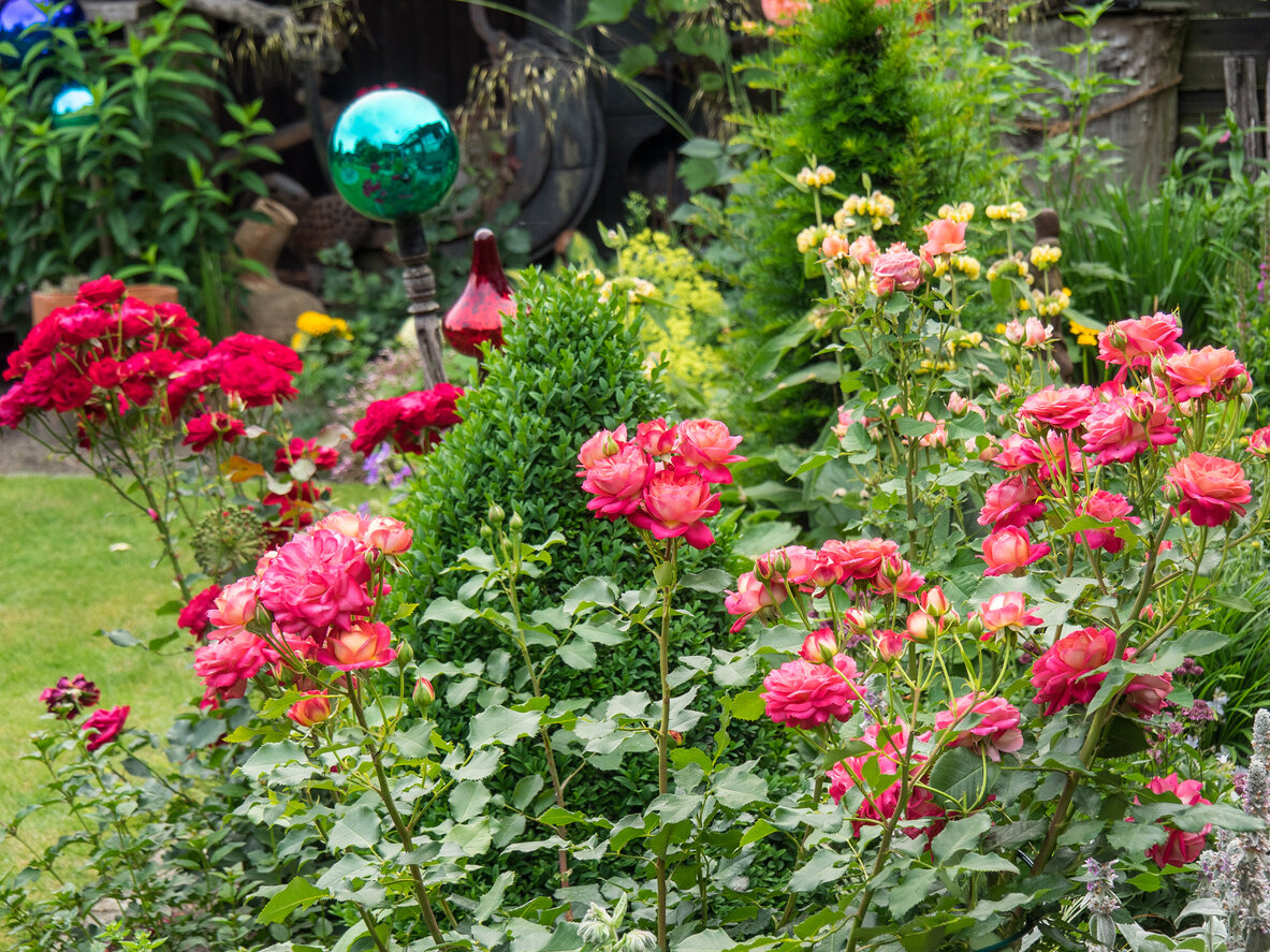 Каждый стиль требует разных подходов: в саду в стиле кантри уместно смешивать растения, не заботясь о строгих сочетаниях цветов, а в средиземноморском следует добавить терракотовые вазы и скульптуры. Плетистые розы могут стать настоящими акцентами, добавляя вертикальности и объема.