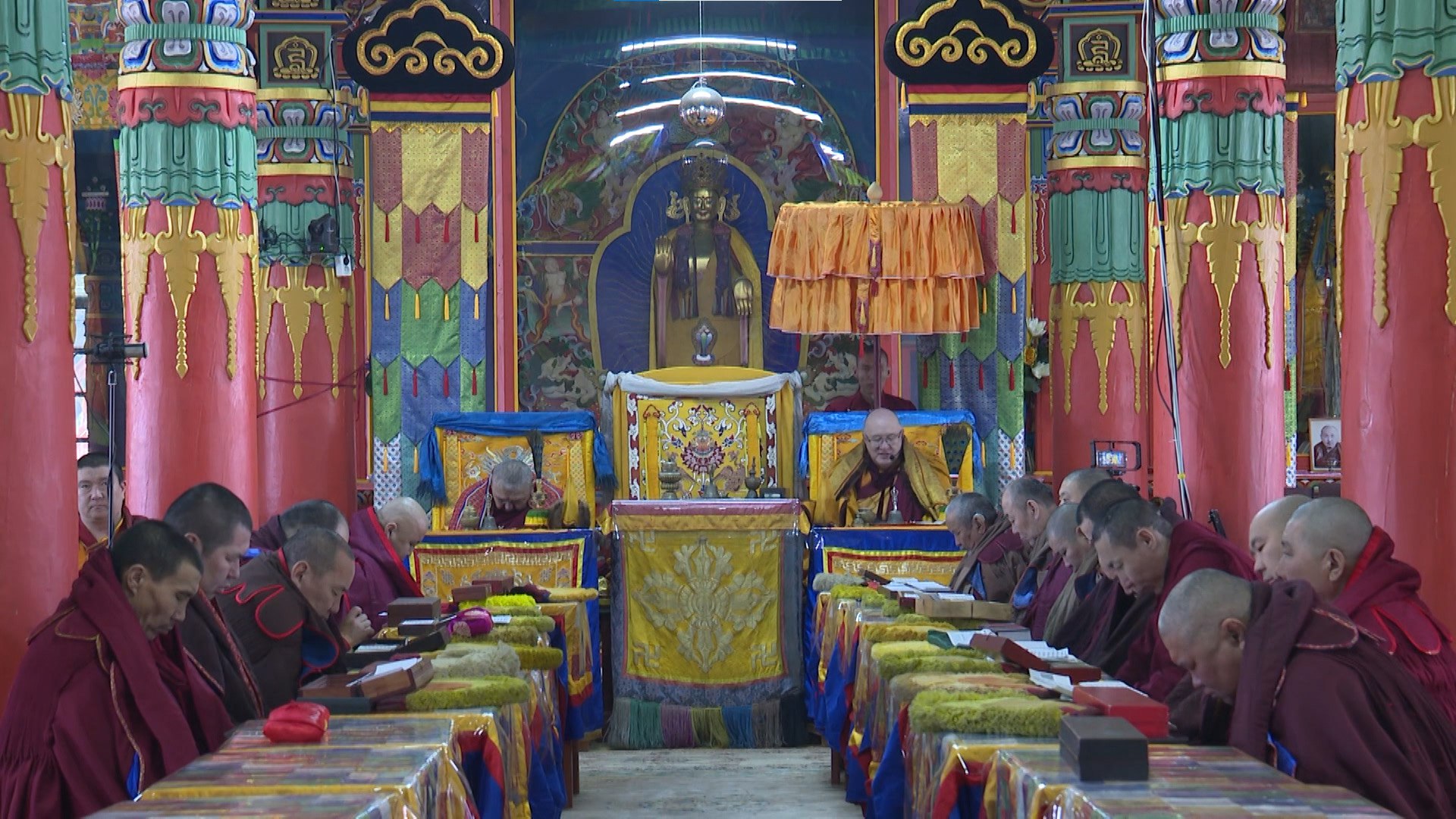 Хурал «Монлам Ченмо» — это особый 15-дневный молитвенный цикл, посвящённый 15 великим чудесам Будды. По традиции в завершающийся день хурала шэрээтэ лама Агинского дацана сегодня даровал посвящение.