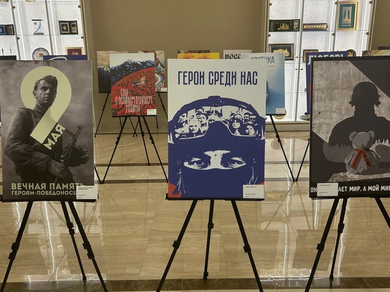 Напомним, на выставке в Совете Федерации представлено более 30 работ, каждая из них отражает разную социально-патриотическую тему, сочетая традиции советского плаката, известного своей социальной силой, и использование современных технологий. Например, Софья Соловьева из Забайкальского края создала плакат «Тень обещания», посвященный современным героям. На нем - мягкая игрушка с бантом в цветах Георгиевской ленты «смотрит» на силуэт военнослужащего в каске.