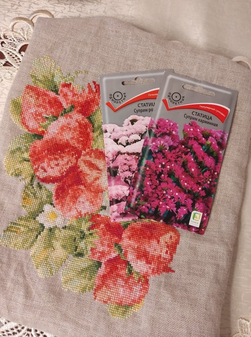 После просмотра публикаций Оксаны из "Сибирского сада", которая также демонстрировала эффектные сухоцветы, пришла мысль: почему бы не попробовать вырастить что-то подобное? Заказав целую линейку расцветок статицы, новичок в садоводстве стал собственником шести великолепных пакетиков с семенами: синие, желтые, белые и другие оттенки.