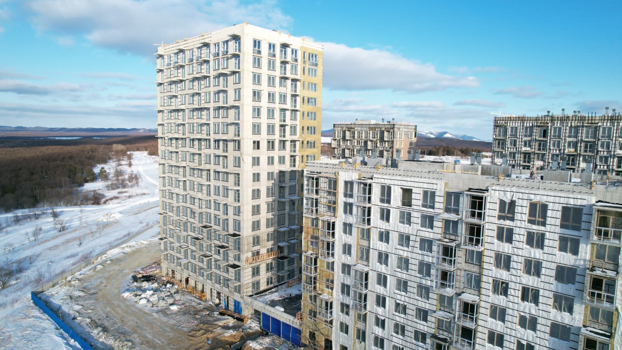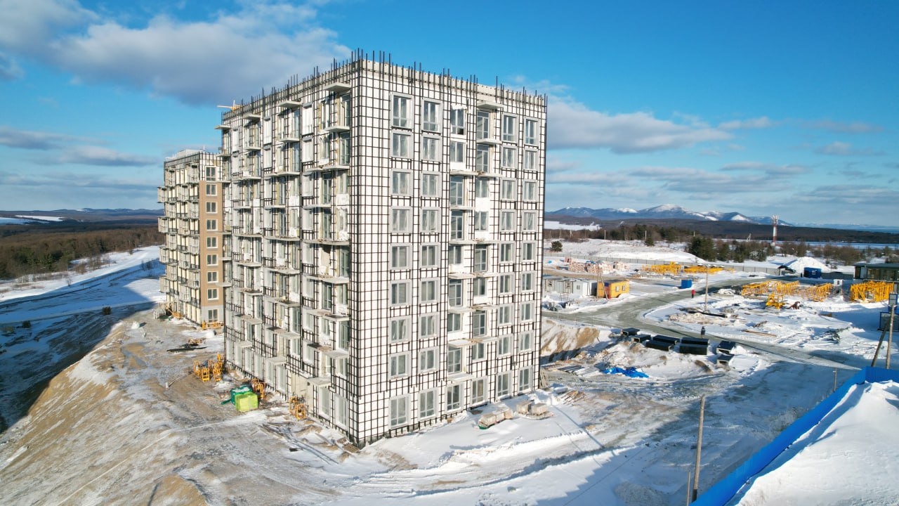 В Корсакове Сахалинской области идет строительство жилого комплекса «Сердце Сахалина» по программе «Дальневосточный квартал». Общая площадь жилья составит 461 тыс. кв. метров, или почти 11 тысяч квартир. Сейчас идет строительство первых 4 домов. Их готовность – 67%. Продолжается устройство перекрытий, кровли, внутренних перегородок, фасадные работы, установка окон. Весь проект рассчитан до 2046 года.