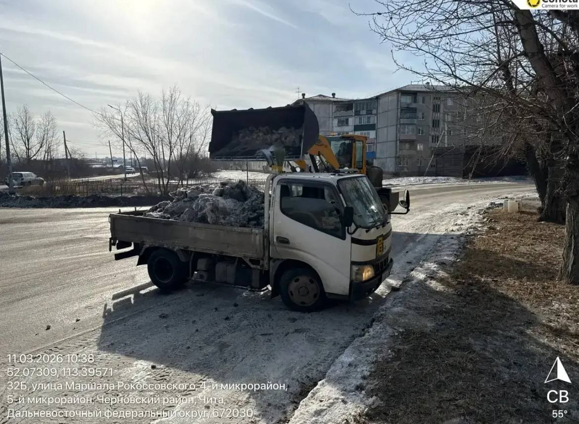 Подрядные организации комитета городского хозяйства продолжают работы по очистке прилотковой части дорог краевого центра с вывозом старого снега. Работы проводятся во всех административных районах Читы.