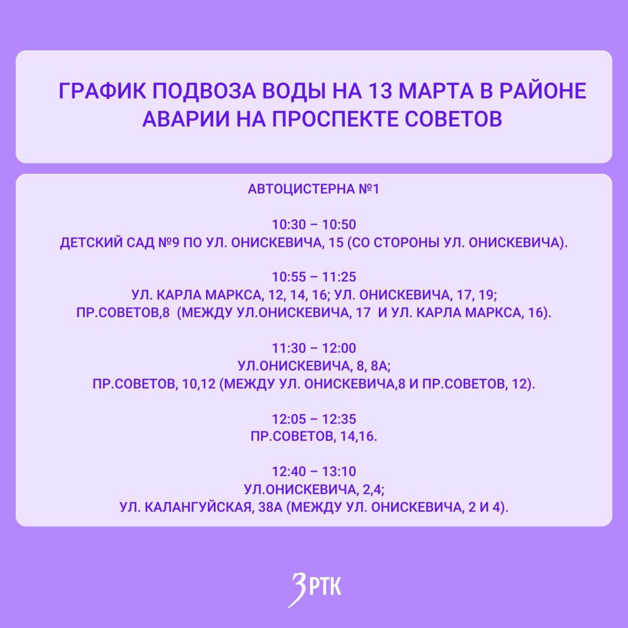 На время устранения аварии светофор на проспекте Советов демонтируют. Также организуют уборку улицы от наледи и подвоз воды, согласно графику, который можно посмотреть в карточках.